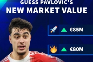 体育资讯3月20日讯 德国转会市场更新社媒动态,预热拜仁中场帕夫洛维奇的身价变动,球员身价确定上涨。